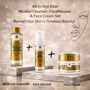 All In One Luxury Skincare' Special Micellar Water Cleanser, Elixir Face Mousse, and Elixir Face Cream,