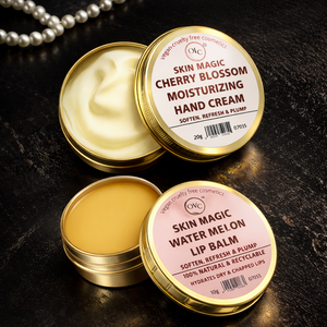 2X Skin Magic Water Mellon Lip Balm Natural Hydrates Dry & Chapped Lips + cherry blossom MOISTURIZING HAND CREAM Soften, Refresh & Plump Hydrates Dry & Chapped HANDS