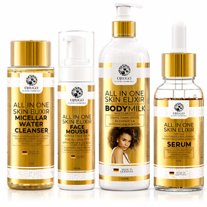 Elevate Your Skincare Ritual with Our All-In-One Elixir Collection: Transform Your Skin from Head to Toe! Immerse yourself in a luxurious skincare experience that targets multiple concerns with our meticulously crafted set of five essential products. Begin with our Micellar Water Cleanser to gently purify your skin, followed by the nourishing All-In-One Elixir Face Mousse for hydration and protection. Enhance your complexion with the All-In-One Skin Elixir Face Serum, addressing fine lines, hyperpigmentation, and more. Seal in the benefits with the All-In-One Skin Elixir Face Cream for a lifted, radiant look, and pamper your body with the All-In-One Skin Elixir Body Butter for a smooth, even-toned finish. Experience the magic of comprehensive skincare with our collection, promising visible results within just two weeks. Embrace the beauty of holistic skincare and unveil a new level of confidence in your skin's natural glow