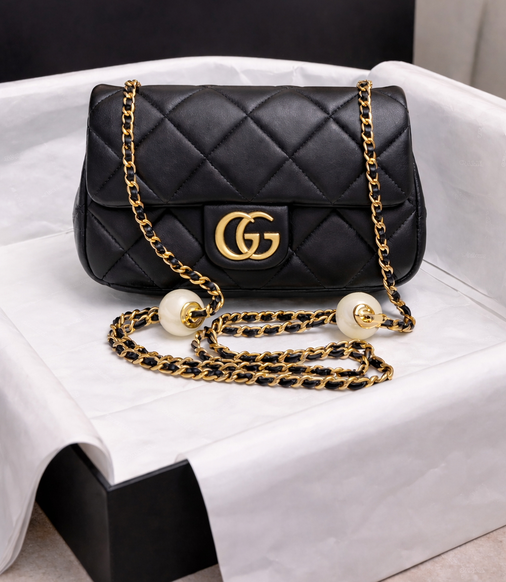 Lambskin AA+ Quality 100% Genuine Leather Classic Flap Medium Quilted Lambskin Black Gold, 18X 1 1X 5cm Black