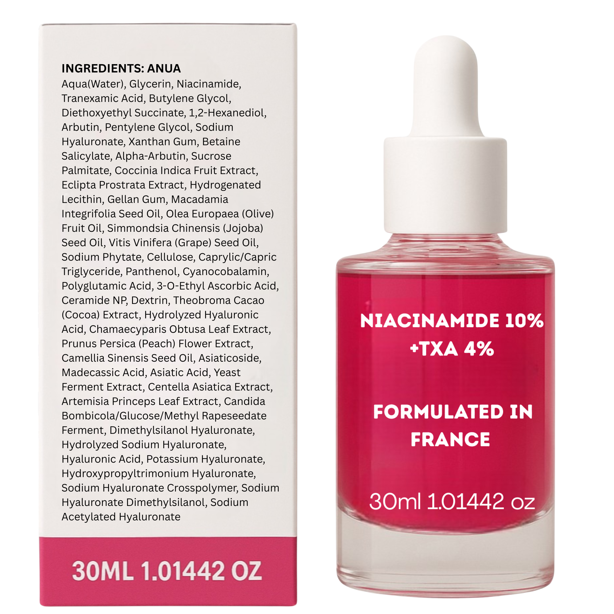 Packed with 10% Niacinamide, 4% Tranexamic Acid, and 2% Arbutin, this serum tackles dull skin and large pores like a pro. Gentle yet effective, it’s boosted with Ceramides and Hyaluronic Acid to repair, soothe, and hydrate, making it perfect for daily use, morning or night. Its lightweight, non-greasy texture absorbs quickly, with a natural pink hue that adds a touch of charm to your routine.