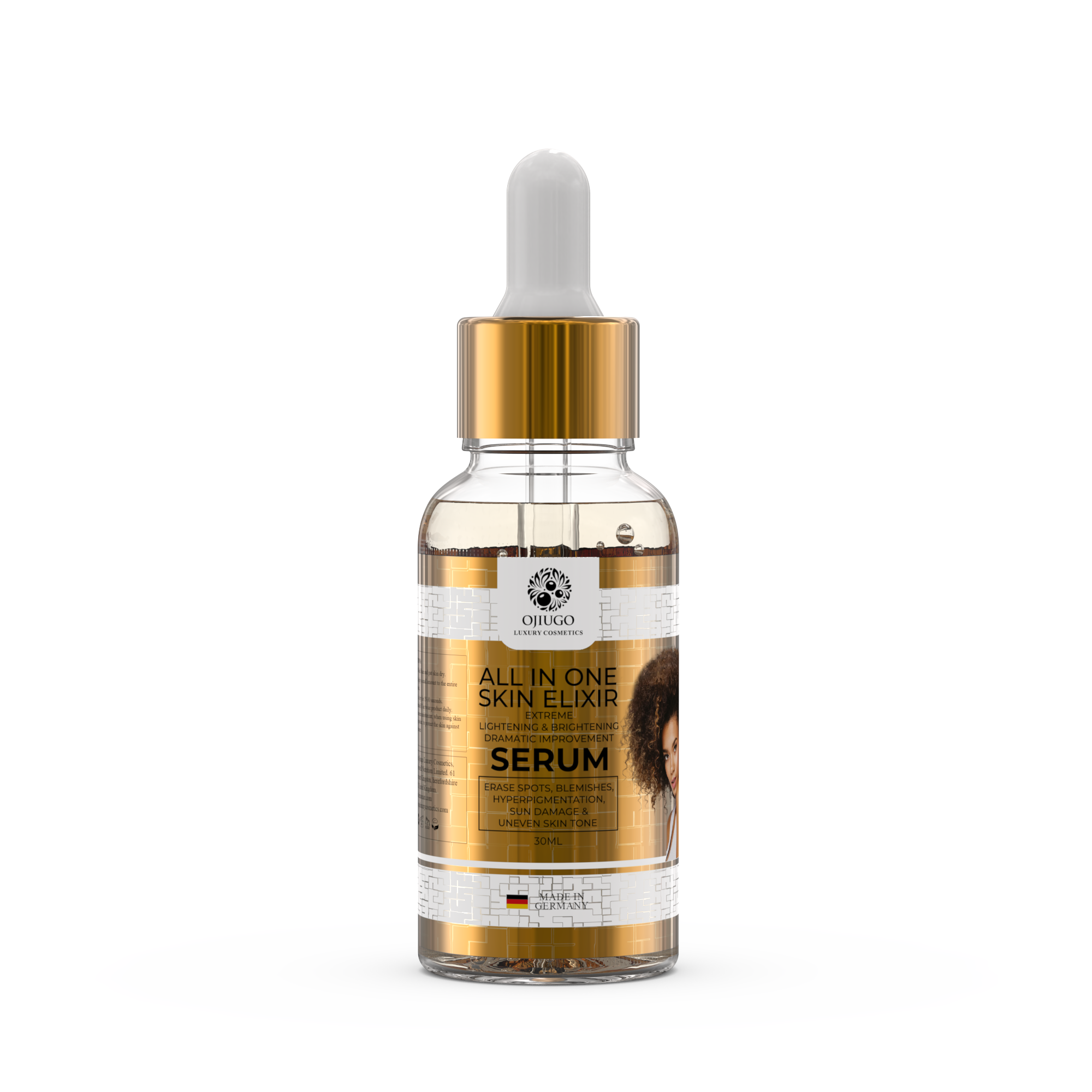 Introducing our All-In-One Elixir Face Serum, a meticulously crafted blend of nature's finest ingredients designed to elevate your skincare routine. This luxurious serum offers a comprehensive solution for a radiant, healthy complexion, delivering potent hydration, brightening, nourishing, and protective benefits. With its transformative power and commitment to your skin's well-being, each drop of this elixir represents a holistic approach to addressing multiple skincare concerns, unveiling your skin's natural beauty.- Hydrates and plumps the skin, reducing the appearance of fine lines and wrinkles.
