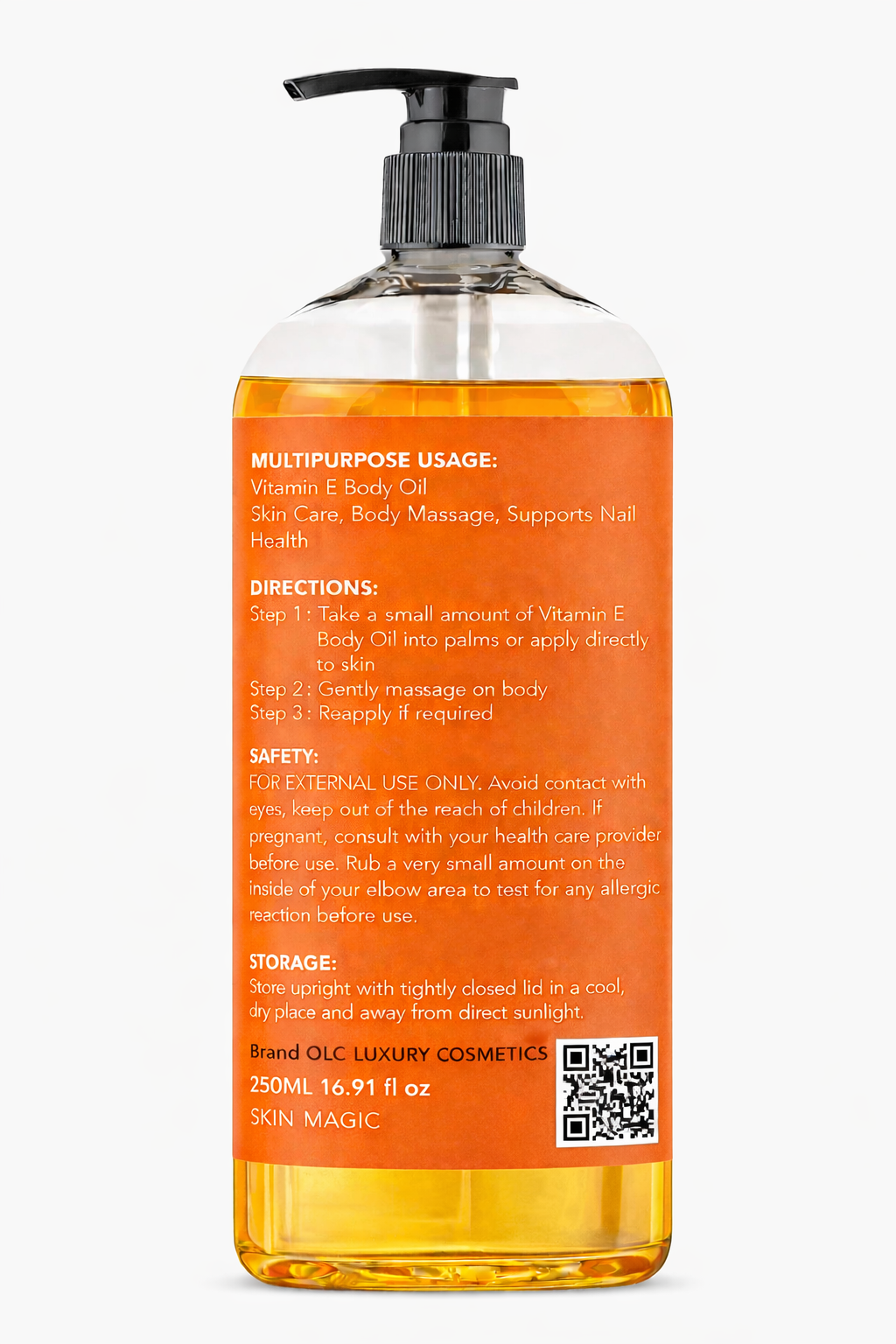 Perfect as a luxurious bath oil, this Vitamin E Oil can be used before, during, or after bathing to leave your skin feeling smooth, soft, and beautifully moisturised with a healthy-looking glow.